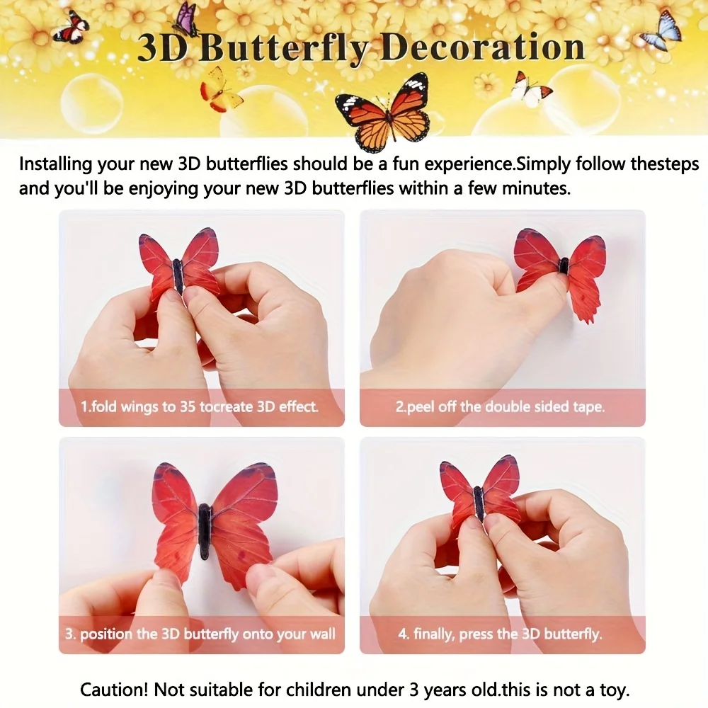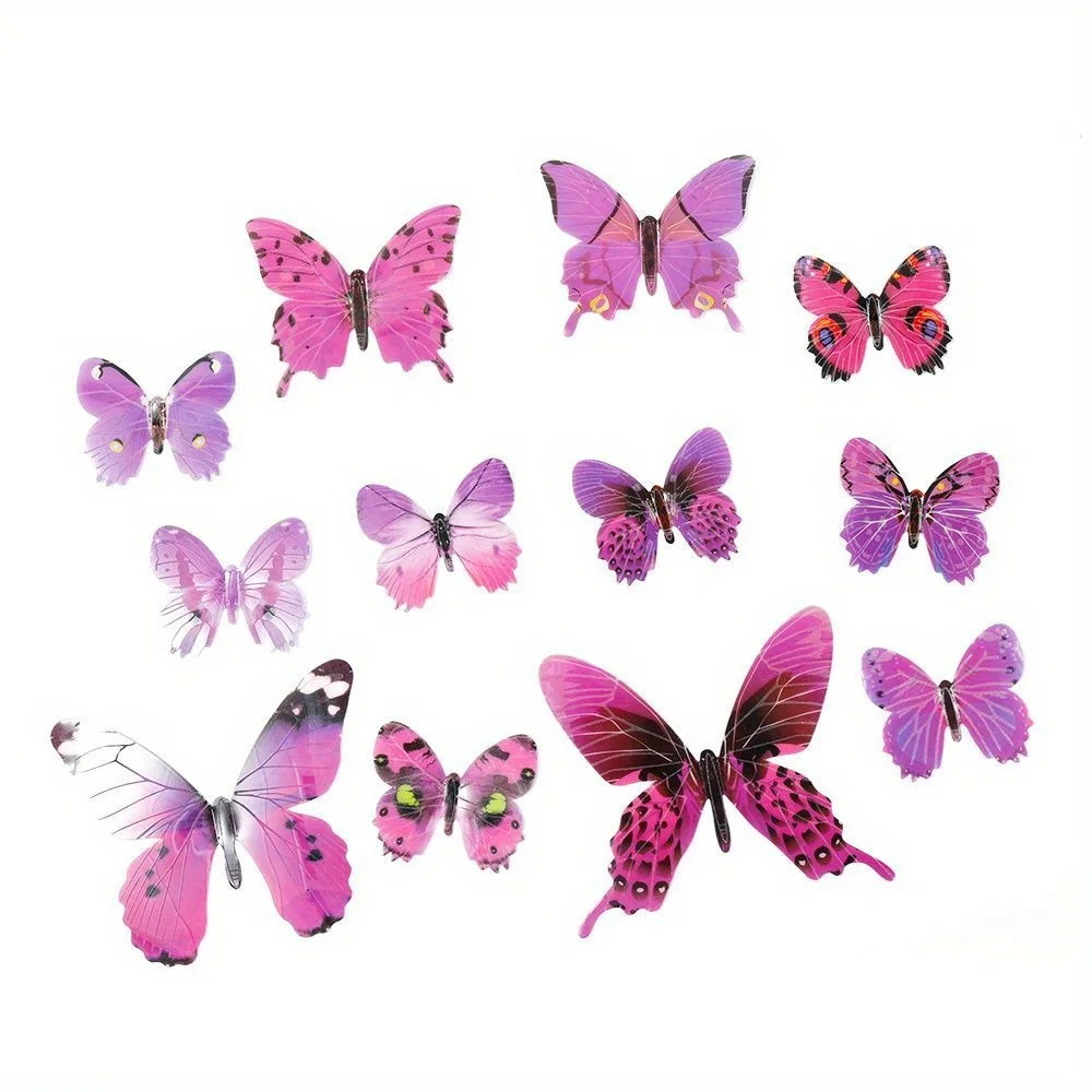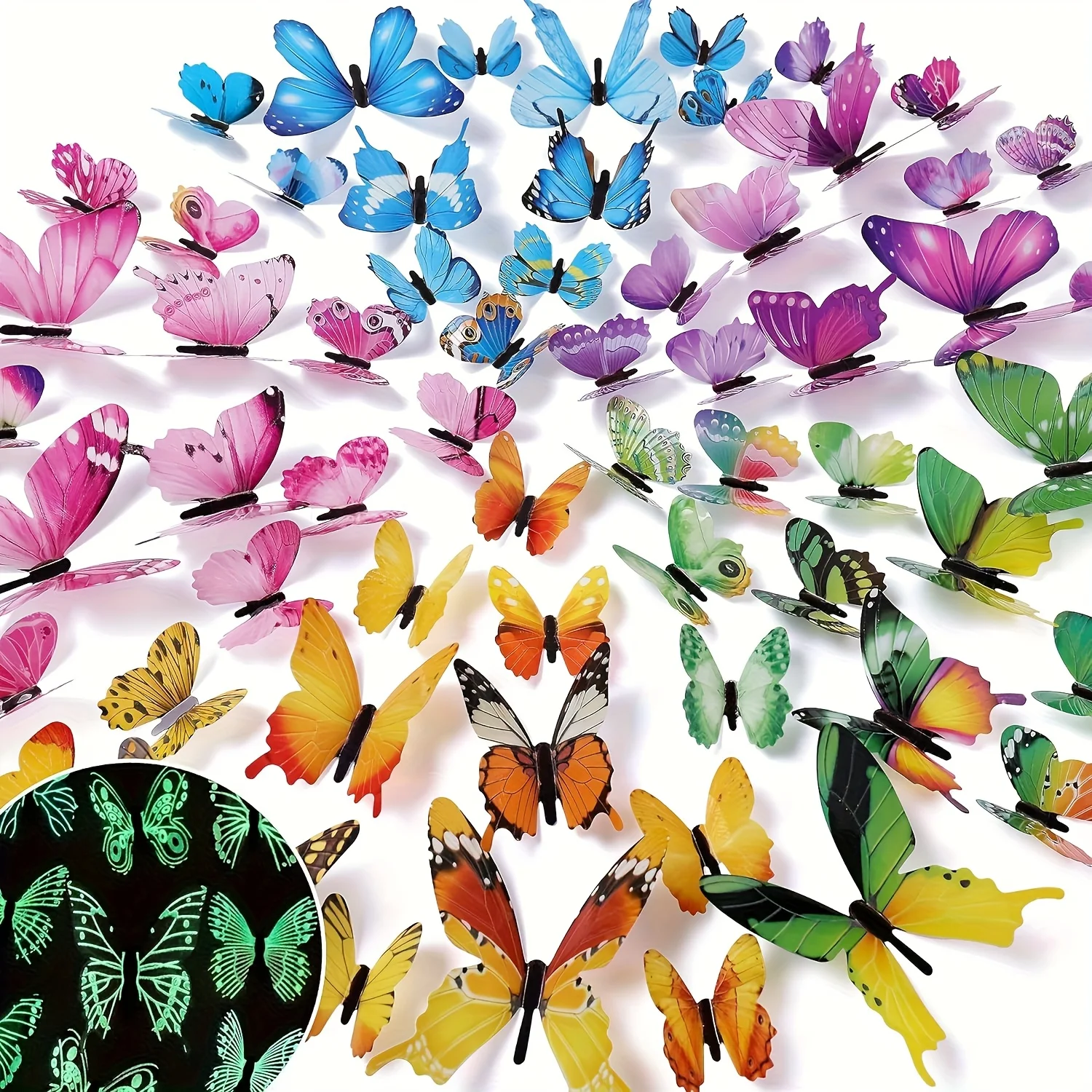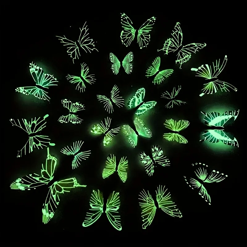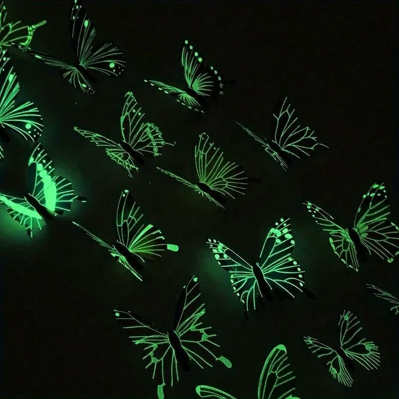 12pcs Glow-in-the-Dark 3D Butterfly Wall Decals UV Activated Luminous Stickers for Bedroom Living Room Nursery Decor