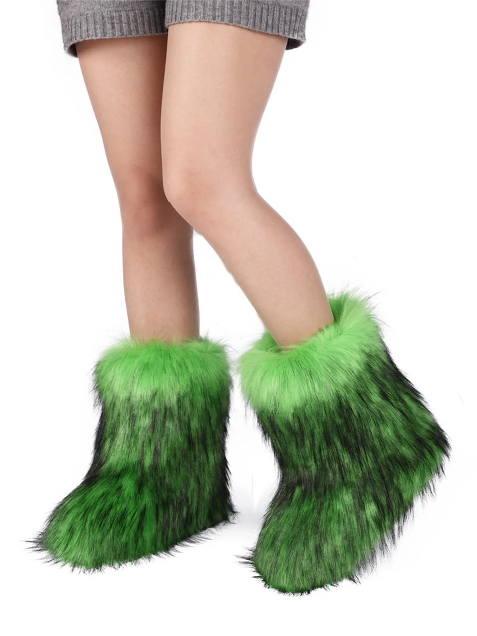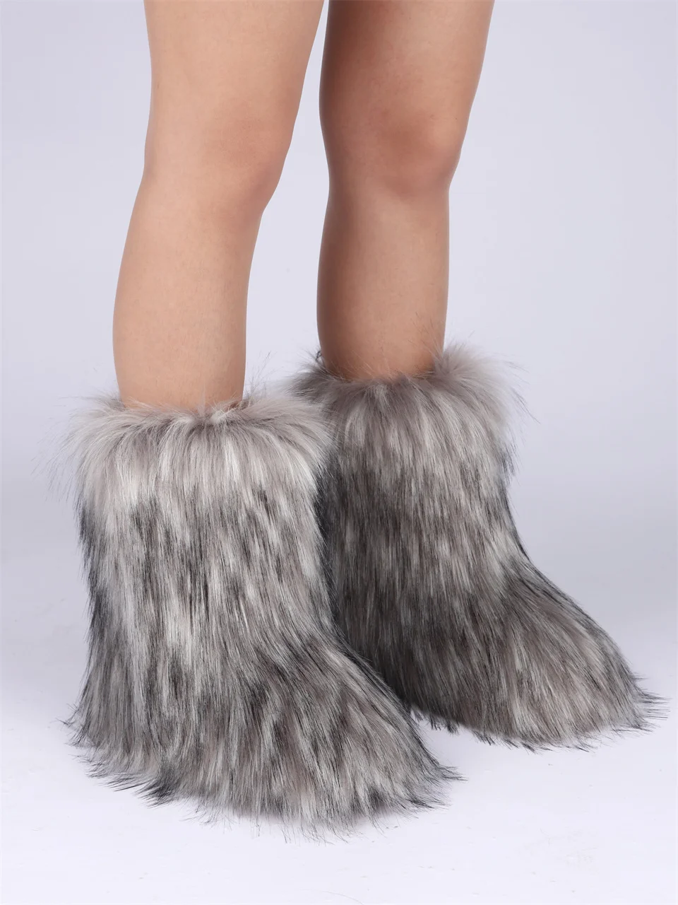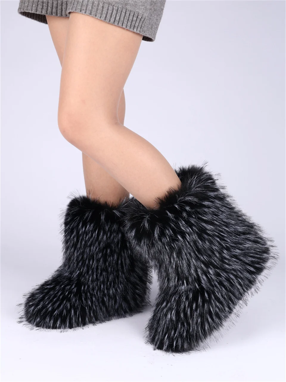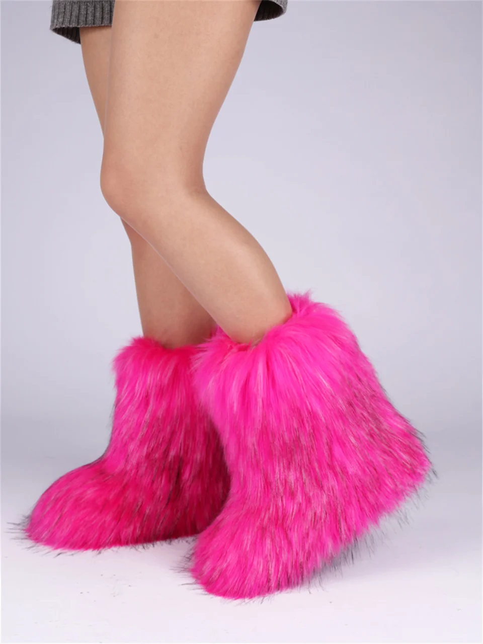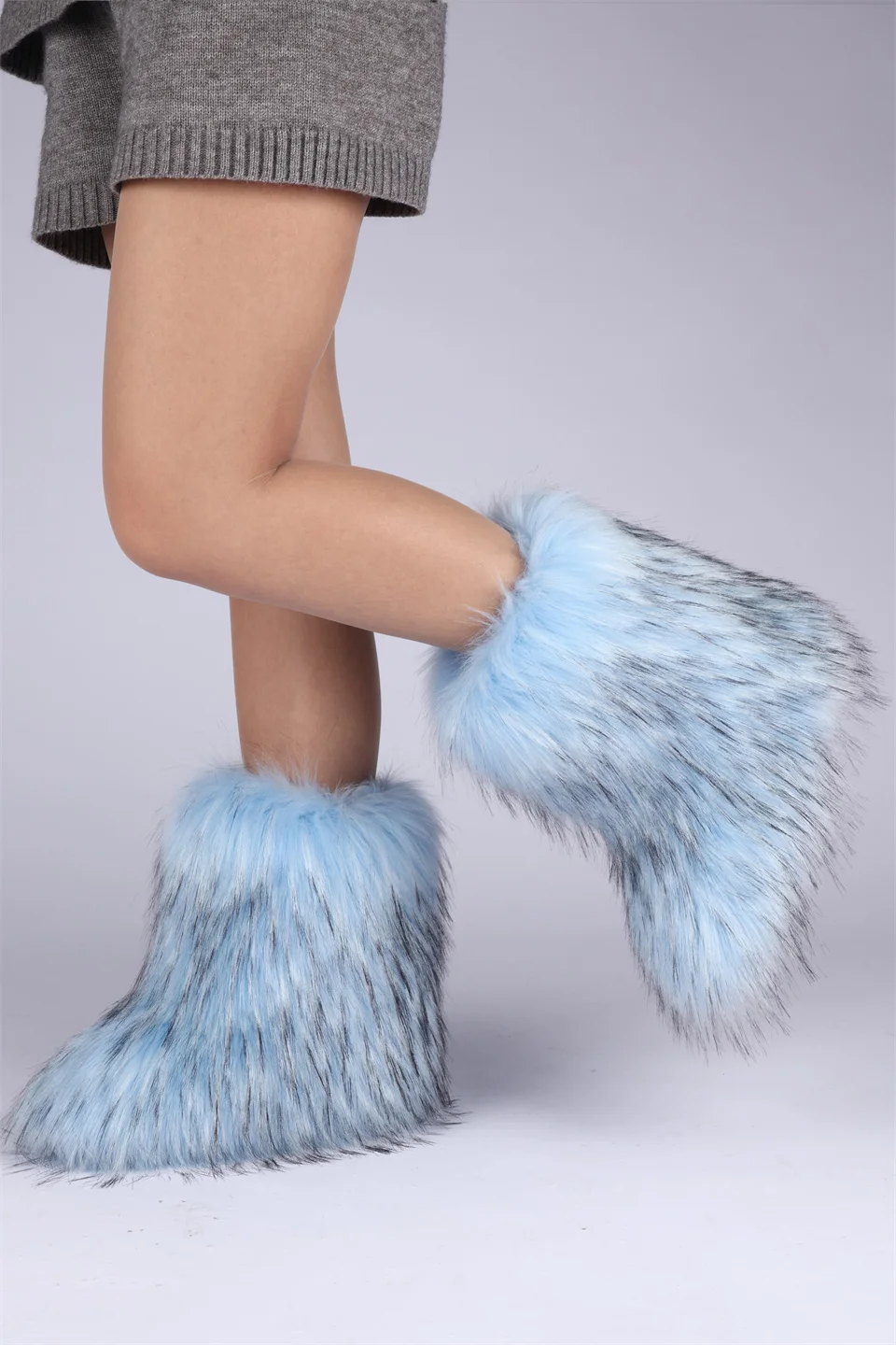 Faux Fur Boots for Women Furry Fuzzy Fluffy Mid Calf Snow Boots Ladies Winter Warm Short Outdoor Indoor Shoes Women's Boots