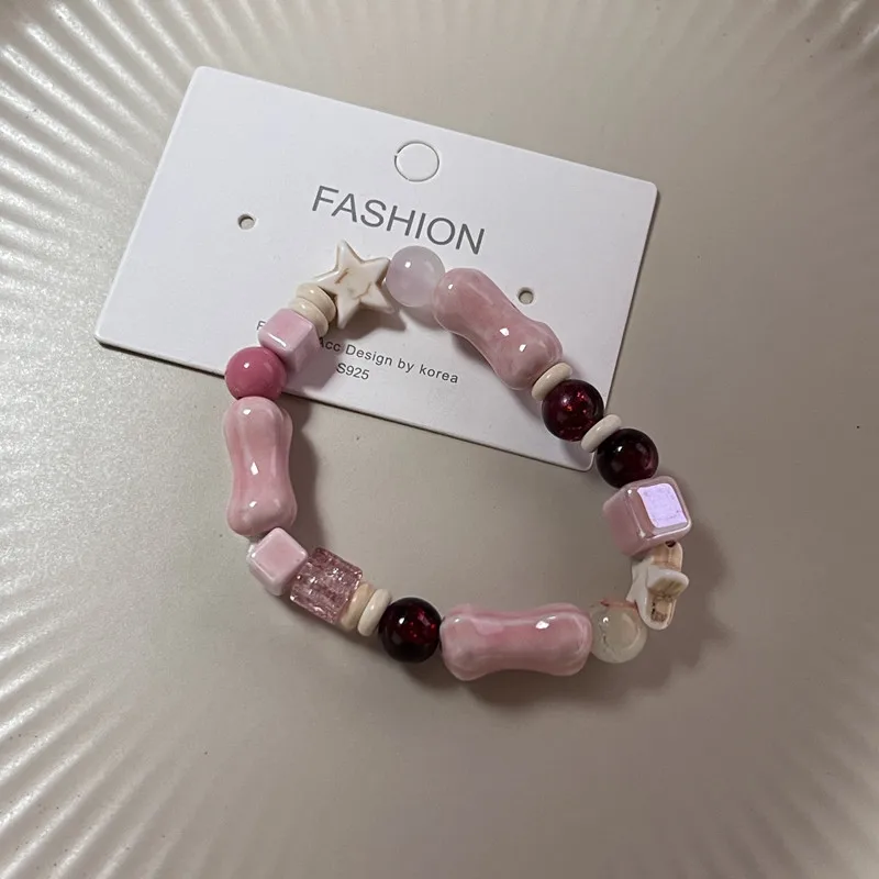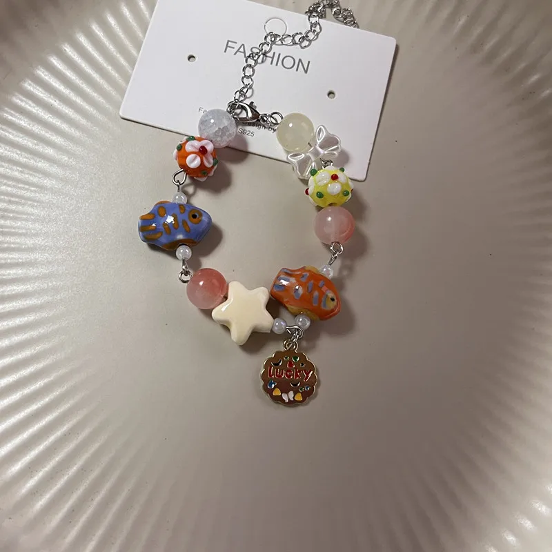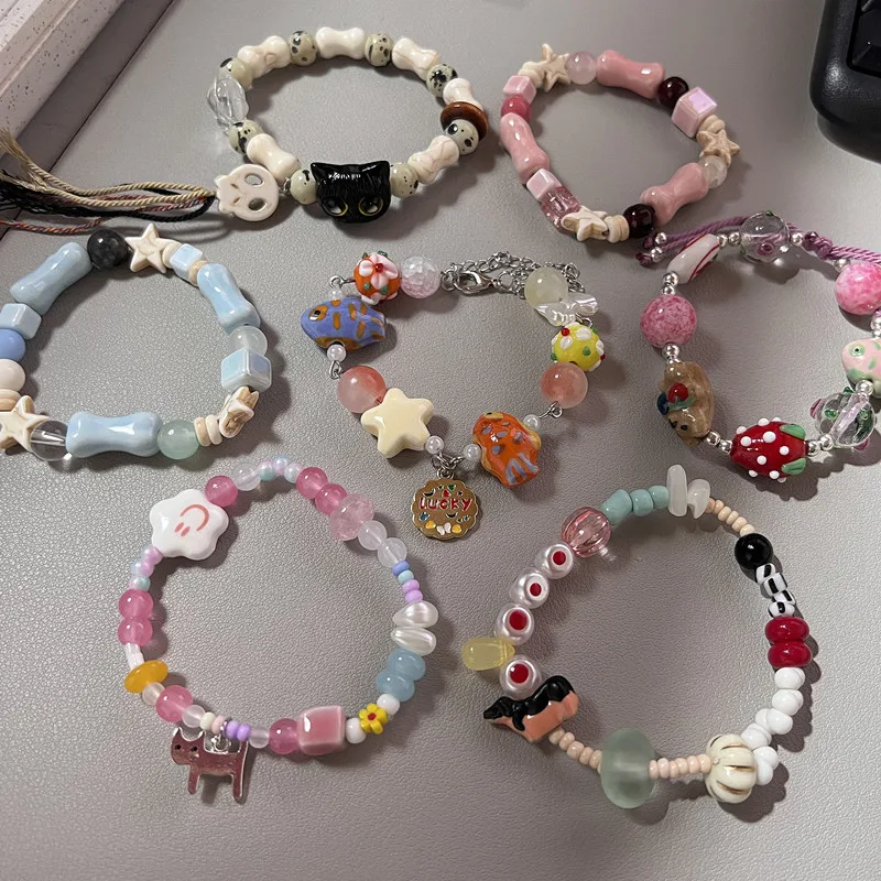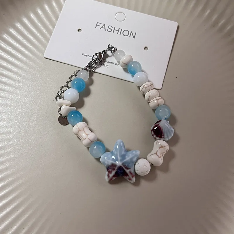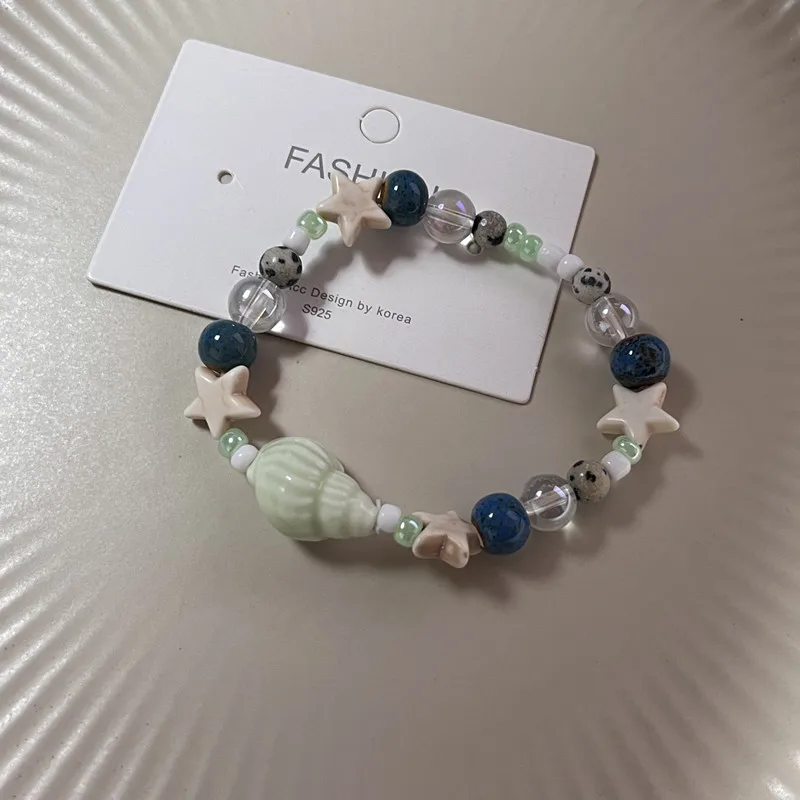 New Cute Geometry Star Conch Ceramic Glass Acrylic Beaded Bracelet Girl Kpop Aesthetic Charm Jewelry Y2K Marine Accessories