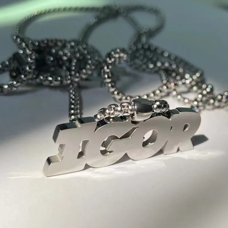 Titanium Steel Lettered Pendant Necklace Hip Hop Niche Necklace Sweater Chain Hoodie Accessories Glamour Jewelry for Men / Women