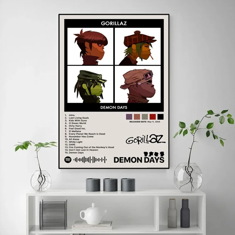 Virtual Anime Rock Band Gorillaz Poster Modern Music Album Cover Canvas Painting Wall Art for Club Living Room Home Decor Mural